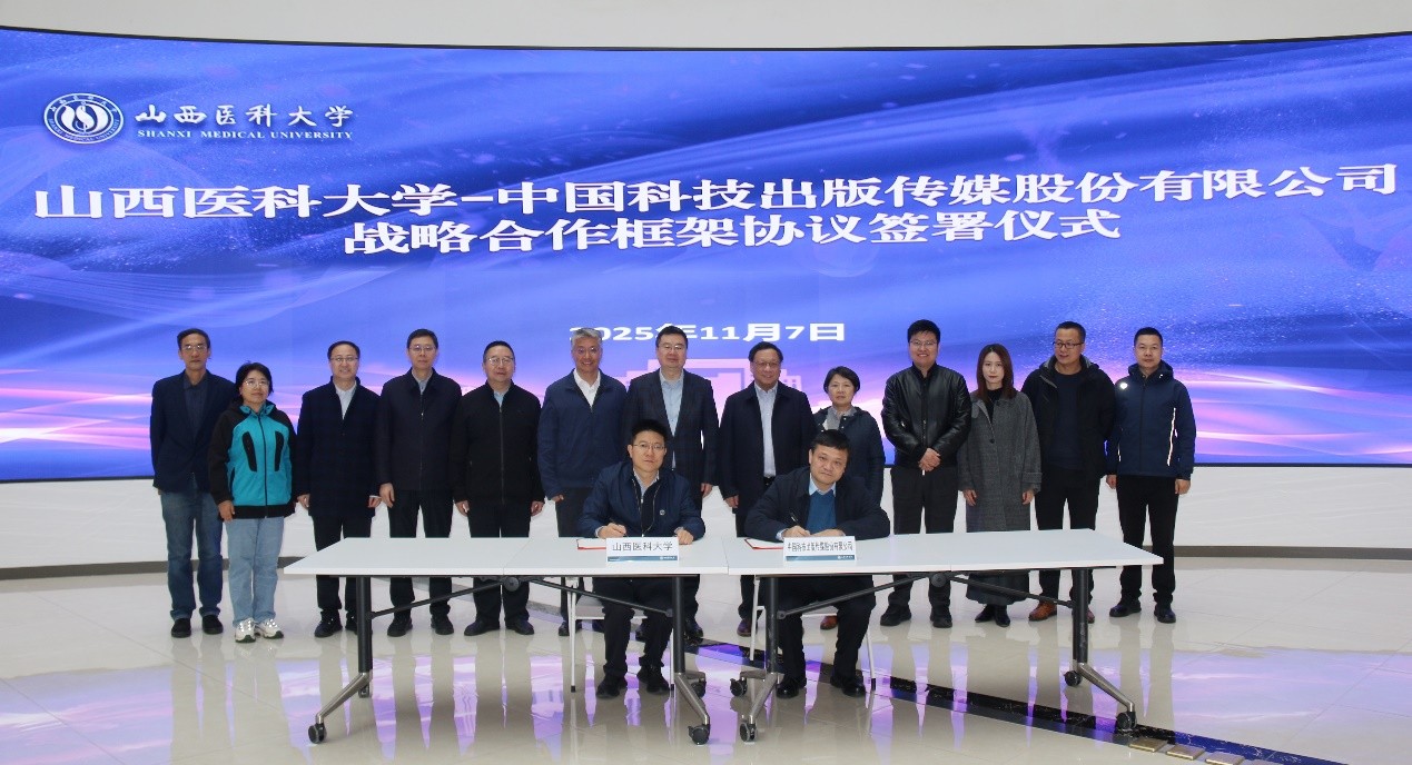 11月7日上午, 山西醫(yī)科大學(xué)—中國科技出版?zhèn)髅焦煞萦邢薰緫?zhàn)略合作框架協(xié)議簽署儀式在山西醫(yī)科大學(xué)圓滿舉行,雙方攜手開啟共筑學(xué)術(shù)高地、服務(wù)醫(yī)學(xué)創(chuàng)新的新篇章。
